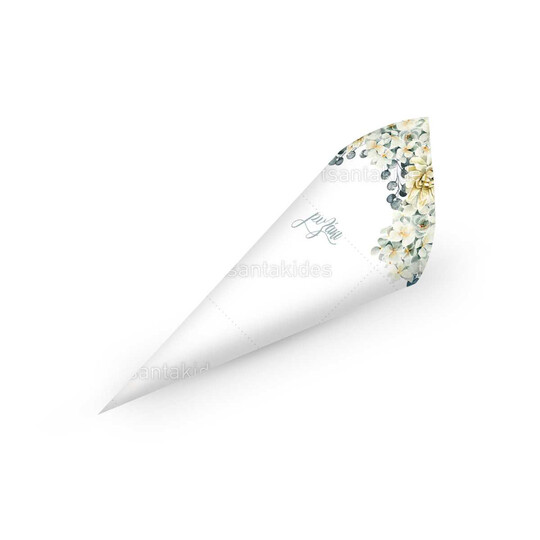 Χωνάκι για ρύζι εκτυπωμένο με dusty blue floral σχεδιασμό σε οβαλ