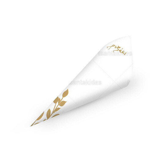 Χωνάκι για ρύζι εκτυπωμένο με λογότυπο save the date και γραμμικά gold κλαδιά