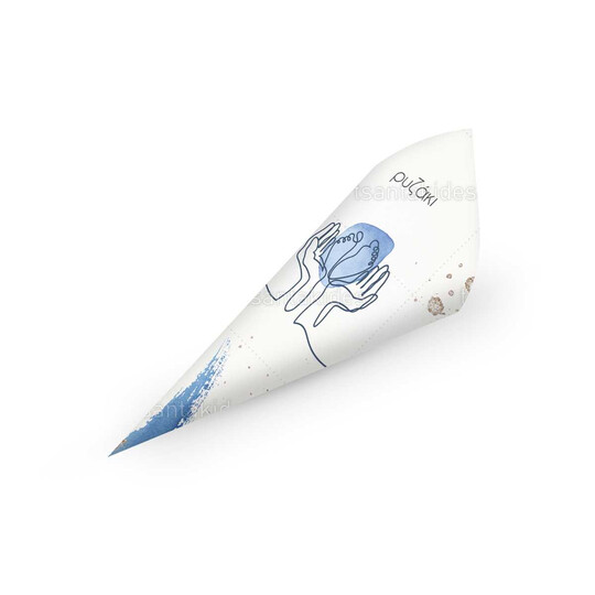 Χωνάκι για ρύζι εκτυπωμένο σε abstract ύφος με γραμμικά bebe ποδαράκια σε μπλε χρωματισμούς