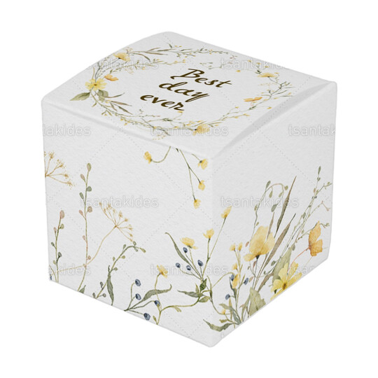 Κουτί εκτυπωμένο με λιτό σχεδιασμό και κλαδιά λουλουδιών σε στεφάνι
