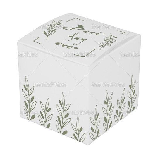 Κουτί εκτυπωμένο σε λαδί αποχρώσεις και λογότυπο η ημερομηνία με κλαδιά ελιάς