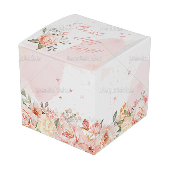 Κουτί εκτυπωμένο με floral peach αποχρώσεις και χρυσό οβάλ στεφάνι