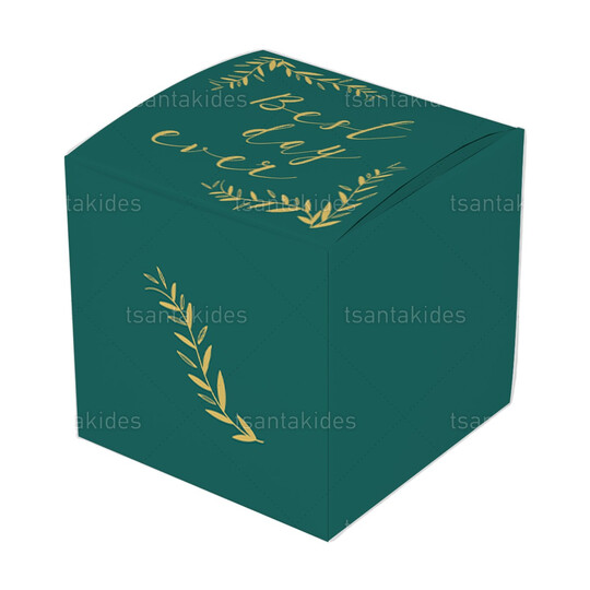 Κουτί εκτυπωμένο με λογότυπο infinity από gold κλαδιά ελιάς και πράσινο backround