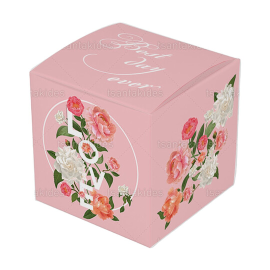 Κουτί εκτυπωμένο με λογότυπο LOVE με τριαντάφυλλα και ροζ backround