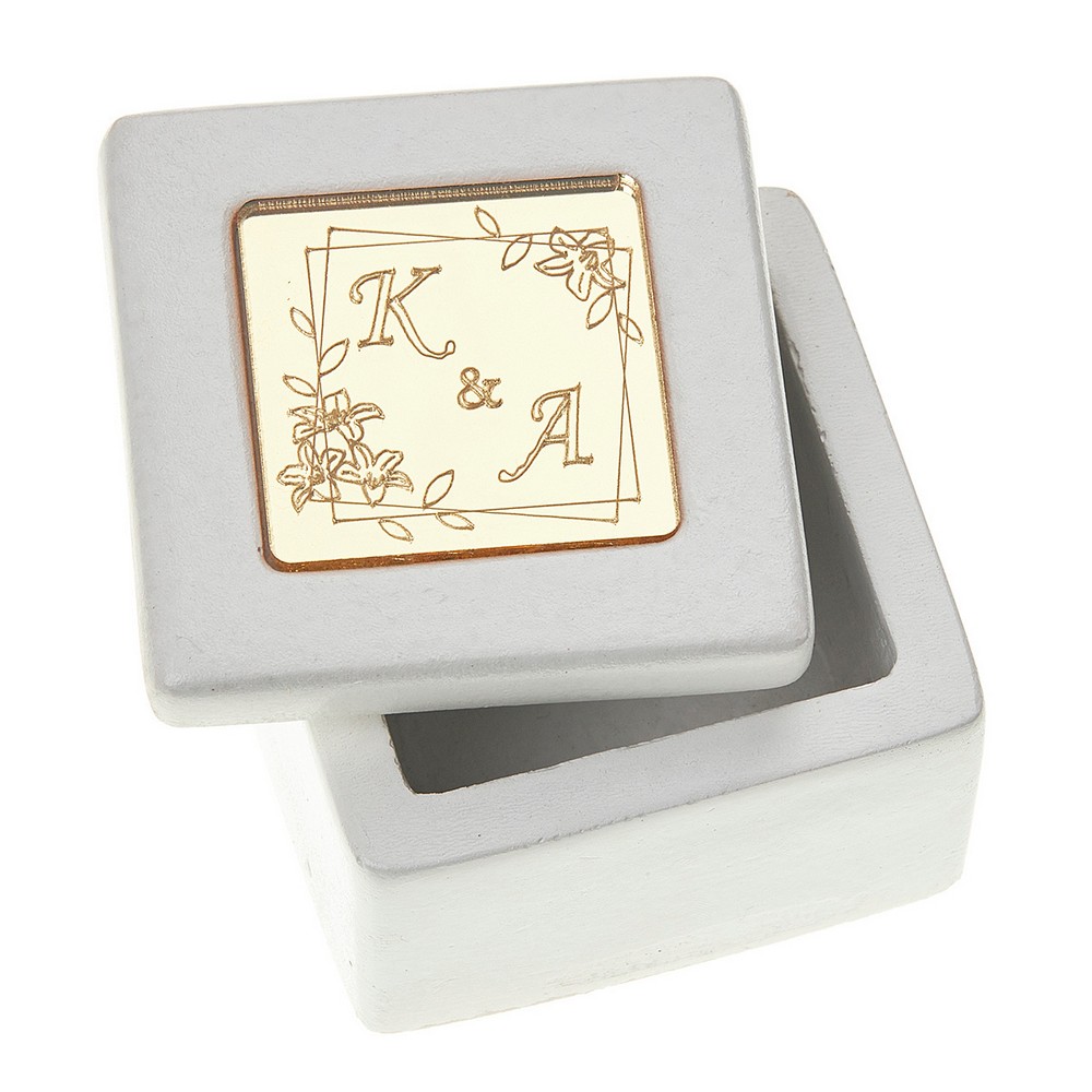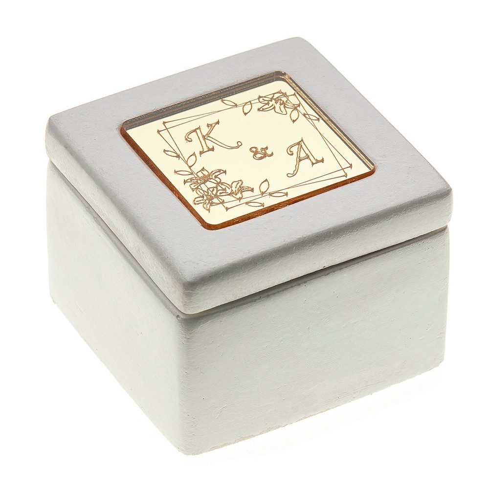 Μπομπονιέρα γάμου γύψινη τετράγωνη μπιζουτιέρα με πλεξιγκλάς διακοσμητικό με τα αρχικά σας.