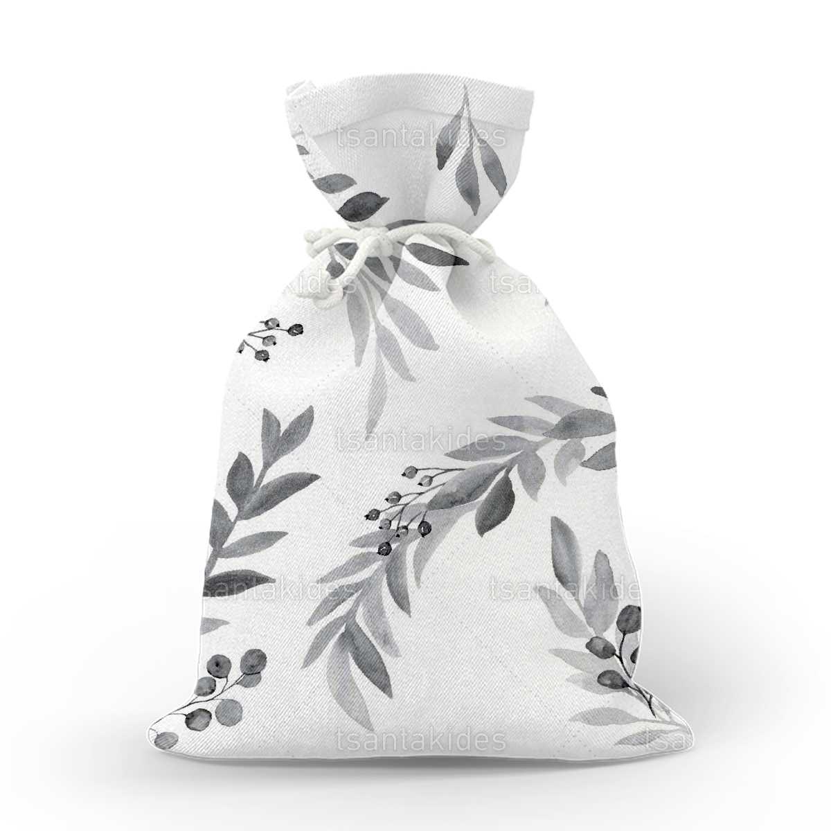 Υφασμάτινο πουγκί εκτυπωμένο με στεφάνι σε γκρι αποχρώσεις