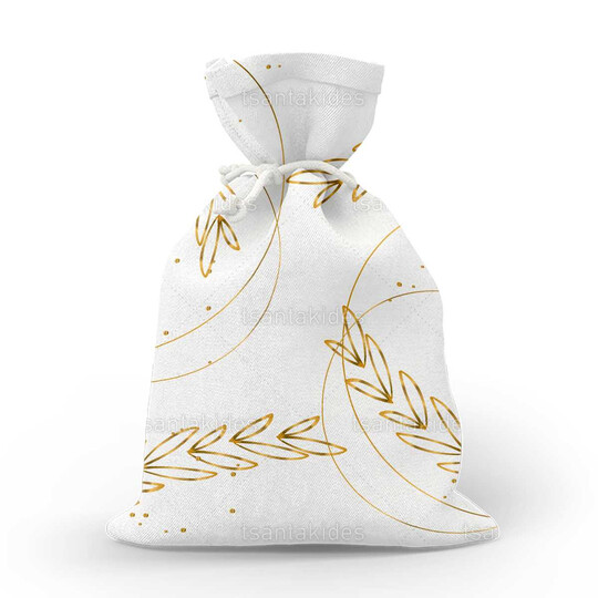 Υφασμάτινο πουγκί εκτυπωμένο με γραμμικό στρογγυλό στεφανάκι σε χρυσαφί αποχρώσεις