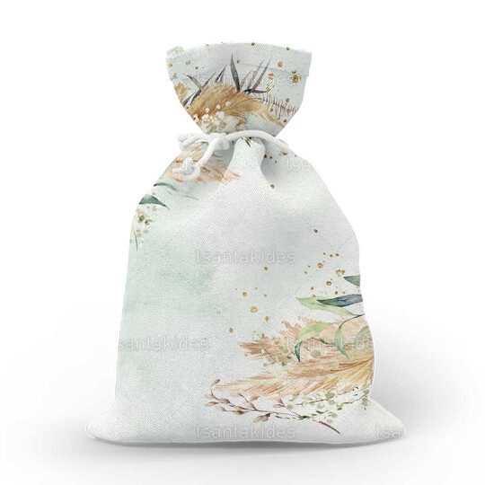 Υφασμάτινο πουγκί εκτυπωμένο με θέμα pampas σε pastel αποχρώσεις