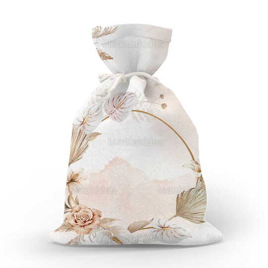 Υφασμάτινο πουγκί εκτυπωμένο με κυκλικό στεφανάκι από pampas