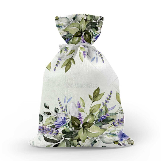 Υφασμάτινο πουγκί εκτυπωμένο με greenery στοιχεία και λεβάντα