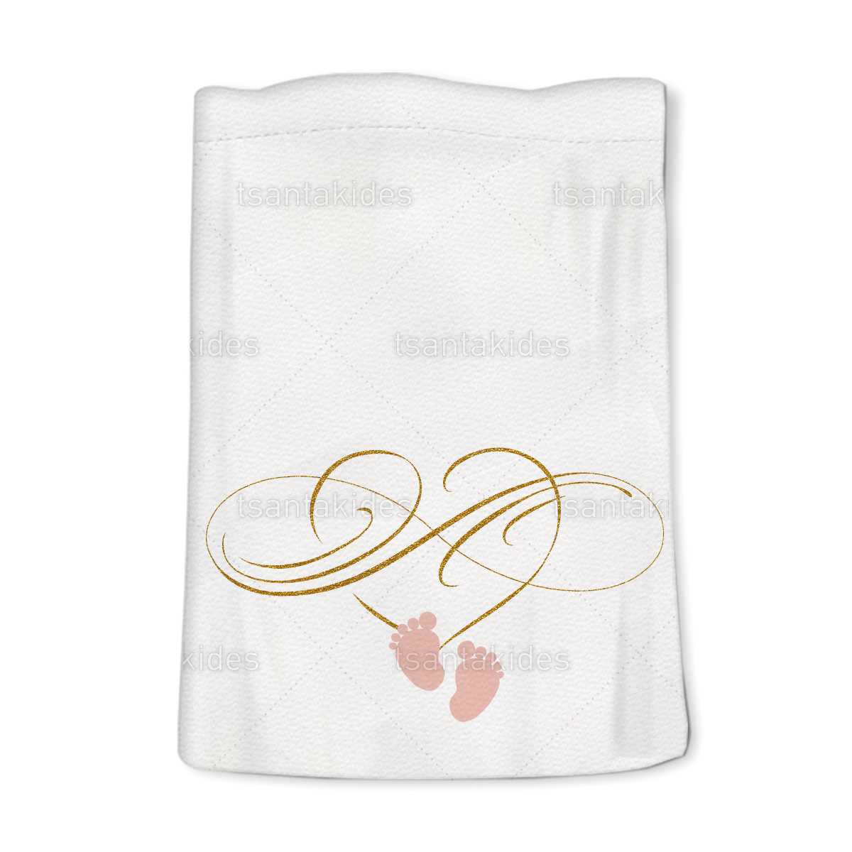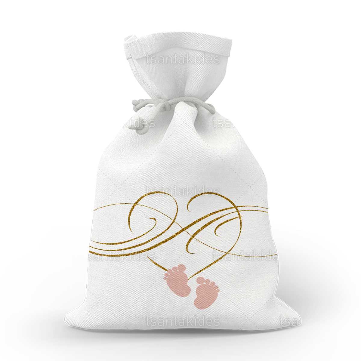 Υφασμάτινο πουγκί εκτυπωμένο με θέμα το σύμβολο του άπειρου και τα bebe πατουσάκια