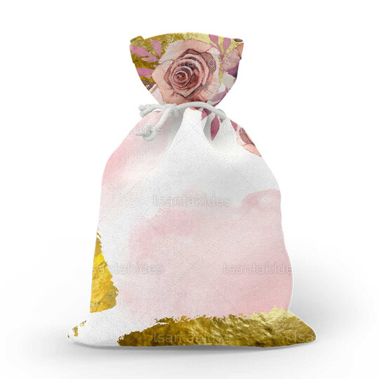 Υφασμάτινο πουγκί εκτυπωμένο με θέμα Flowers with Gold Foil