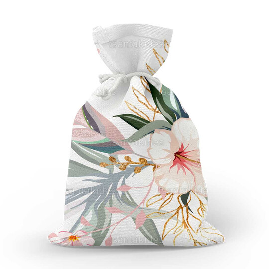 Υφασμάτινο πουγκί εκτυπωμένο με θέμα Tropical Flowers
