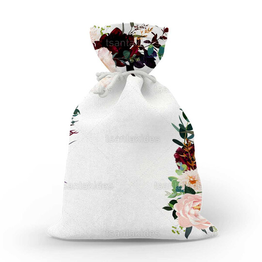 Υφασμάτινο πουγκί εκτυπωμένο με floral σχεδιασμό σε burgundy και ροζ pastel χρωματισμούς