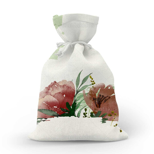 Υφασμάτινο πουγκί εκτυπωμένο με floral σύνθεση σε γήινες αποχρώσεις