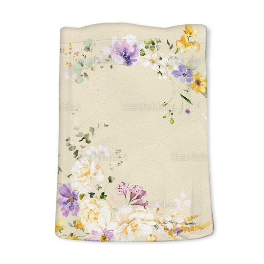 Υφασμάτινο πουγκί εκτυπωμένο με χρυσή αψίδα και σύνθεση από pastel λιλά και κίτρινα λουλούδια