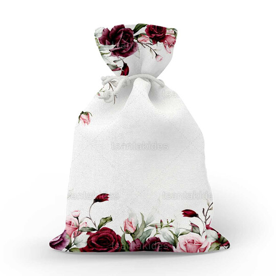 Υφασμάτινο πουγκί εκτυπωμένο με floral σχεδιασμό σε burgundy και μωβ χρωματισμούς