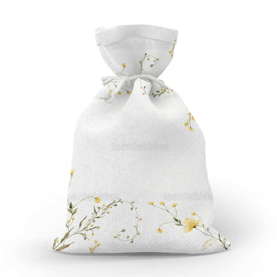 Υφασμάτινο πουγκί εκτυπωμένο με λιτό σχεδιασμό και κλαδιά λουλουδιών σε στεφάνι