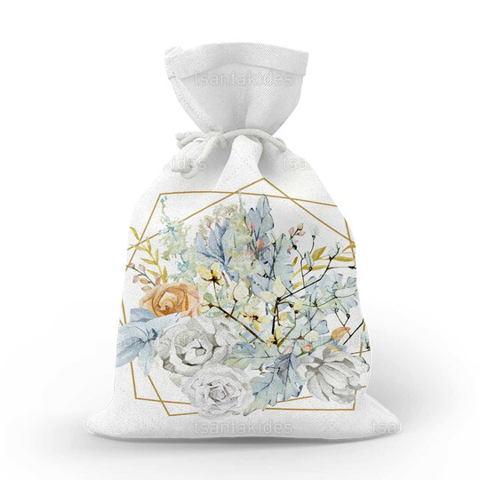 Υφασμάτινο πουγκί εκτυπωμένο με dusty blue λουλούδια και χρυσό γεωμετρικό σχήμα