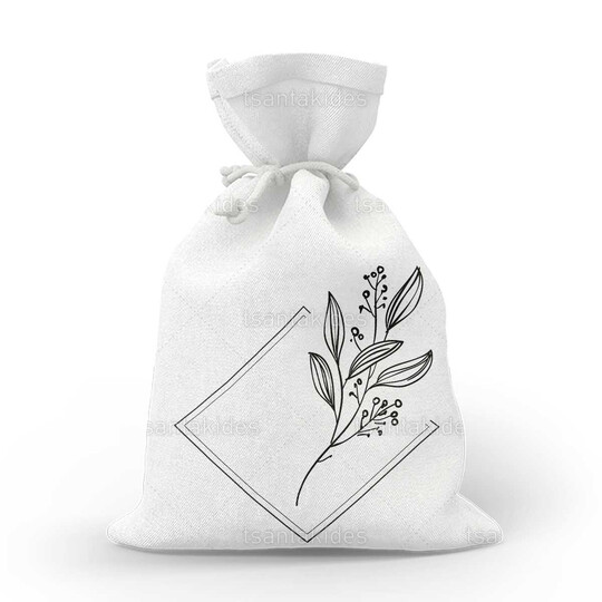 Υφασμάτινο πουγκί εκτυπωμένο σε γκρι αποχρώσεις και λογότυπο τα μονογράμματα με κλαδί ελιάς