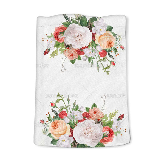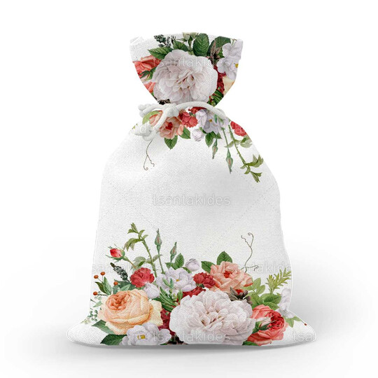 Υφασμάτινο πουγκί εκτυπωμένο με floral ρομαντική σύνθεση με παιώνιες και τριαντάφυλλα