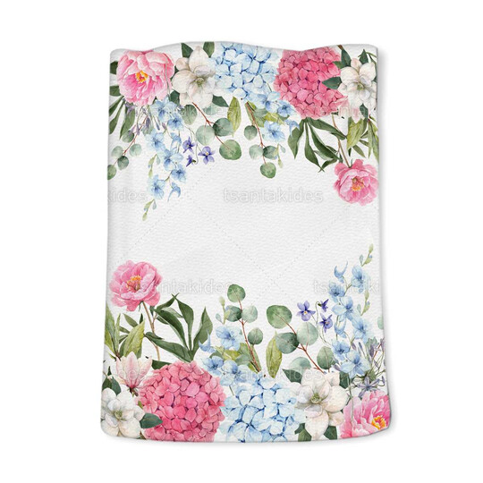 Υφασμάτινο πουγκί εκτυπωμένο με floral σύνθεση από γαλάζιες και ροζ ορτανσίες