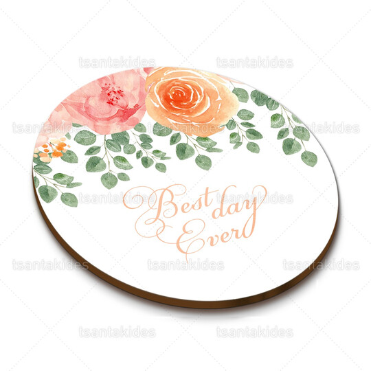 Ξύλινο σουβέρ γάμου εκτυπωμένο με floral σχεδιασμό