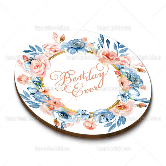 Ξύλινο σουβέρ γάμου εκτυπωμένο με floral σχεδιασμό
