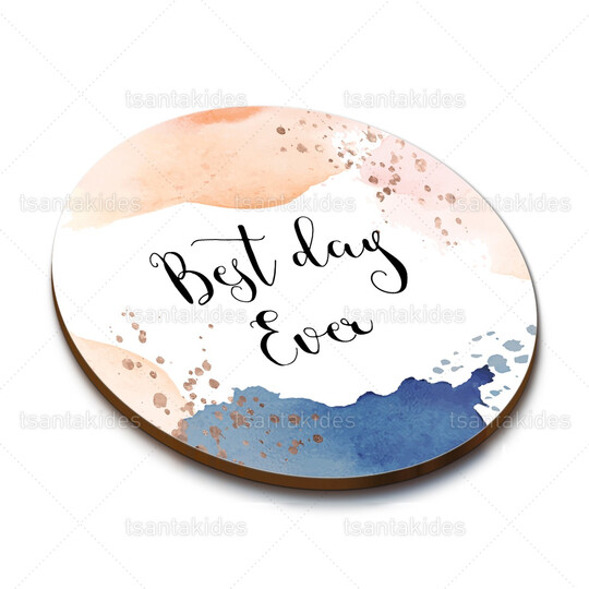 Ξύλινο σουβέρ γάμου εκτυπωμένο με θέμα save the date και watercolor design