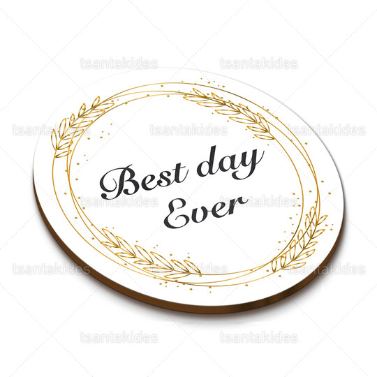 Ξύλινο σουβέρ γάμου εκτυπωμένο με γραμμικό στρογγυλό στεφανάκι σε χρυσαφί αποχρώσεις