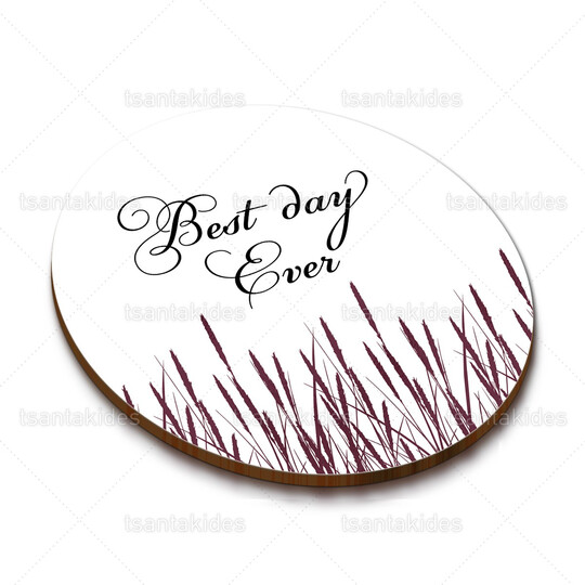 Ξύλινο σουβέρ γάμου εκτυπωμένο με λιτό σχεδιασμό και μοβ χρωματισμούς