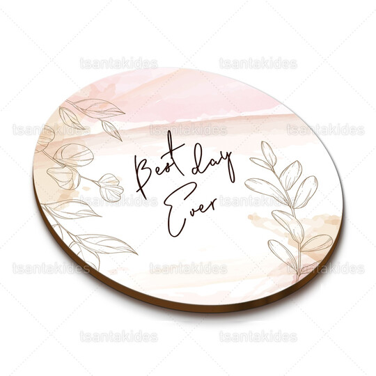 Ξύλινο σουβέρ γάμου εκτυπωμένο με watercolor και γραμμικά κλαδιά