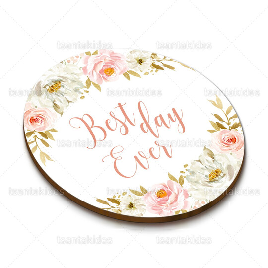 Ξύλινο σουβέρ γάμου εκτυπωμένο με dusty pink floral σχεδιασμό