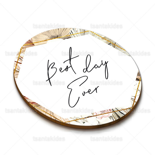 Ξύλινο σουβέρ γάμου εκτυπωμένο με τα pampas σε γήινες αποχρώσεις