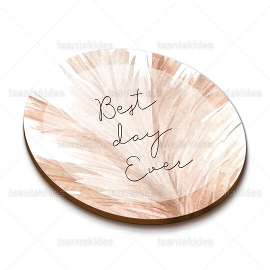Ξύλινο σουβέρ γάμου εκτυπωμένο με pampas