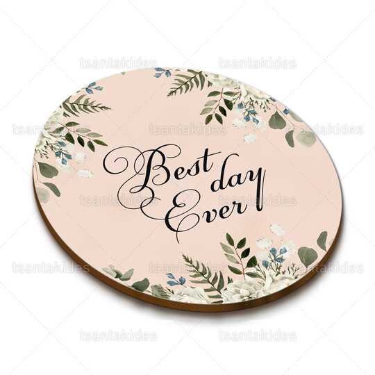 Ξύλινο σουβέρ γάμου εκτυπωμένο με floral σχεδιασμό από τριαντάφυλλα και ορχιδέες