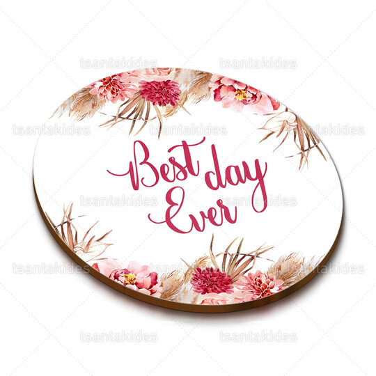 Ξύλινο σουβέρ γάμου εκτυπωμένο με dried flowers and pampas