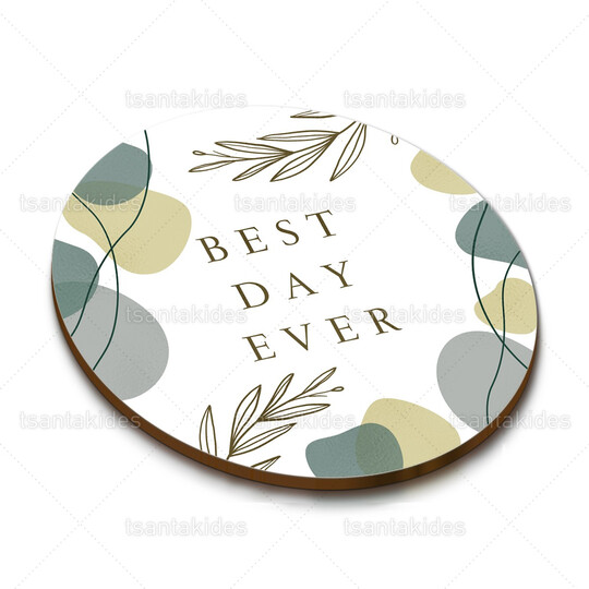 Ξύλινο σουβέρ γάμου εκτυπωμένο με minimal σχεδιασμό και sage green στοιχεία
