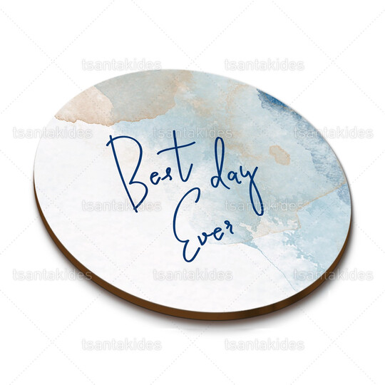Ξύλινο σουβέρ γάμου εκτυπωμένο με minimal σχεδιασμό και dusty blue watercolor