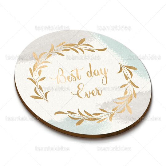 Ξύλινο σουβέρ γάμου εκτυπωμένο με λιτό, chic σχεδιασμό, watercolor και χρυσά κλαδιά