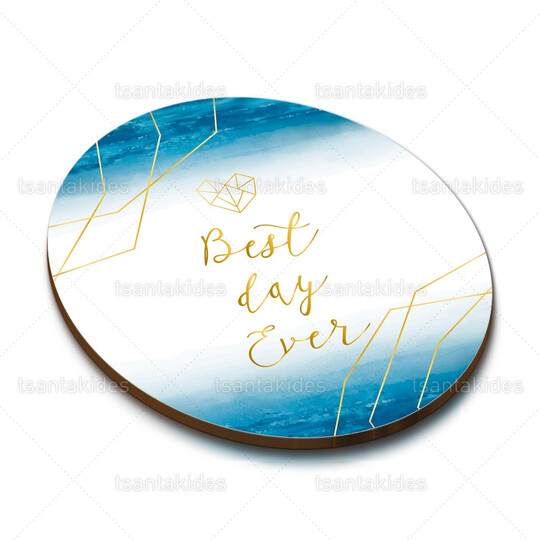 Ξύλινο σουβέρ γάμου εκτυπωμένοσε navy blue χρωματισμούς
