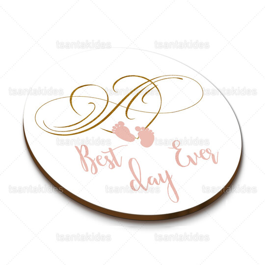Ξύλινο σουβέρ γάμου εκτυπωμένομε το σύμβολο του άπειρου και τα bebe πατουσάκια