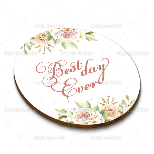 Ξύλινο σουβέρ γάμου εκτυπωμένο με θέμα Flower Wreath