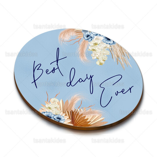 Ξύλινο σουβέρ γάμου εκτυπωμένο με θέμα Dusty Blue Pampas