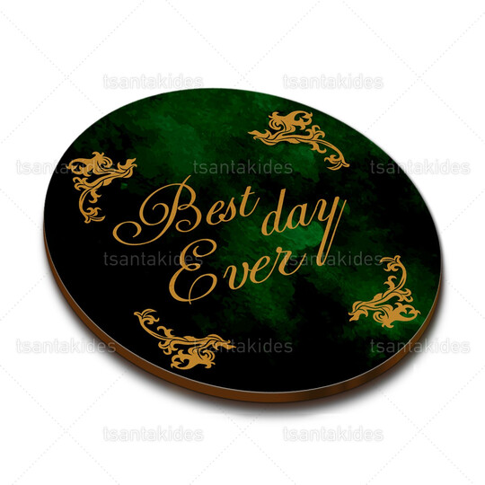 Ξύλινο σουβέρ γάμου εκτυπωμένο με θέμα Emerald Green and Gold