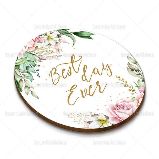 Ξύλινο σουβέρ γάμου εκτυπωμένο με θέμα Flower Romance