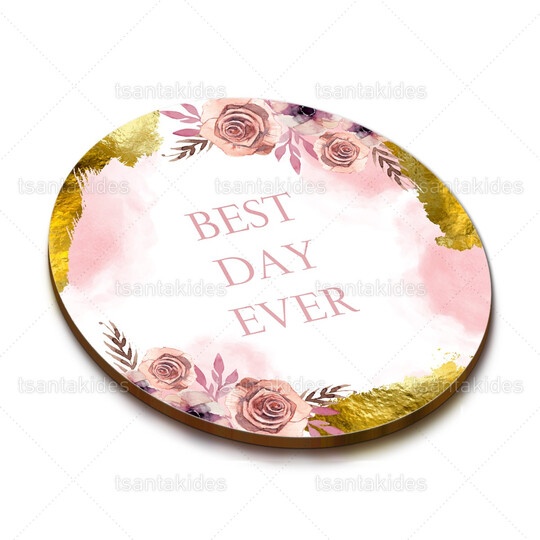 Ξύλινο σουβέρ γάμου εκτυπωμένο με θέμα Flowers with Gold Foil