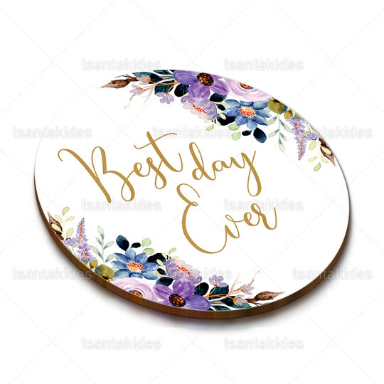 Ξύλινο σουβέρ γάμου εκτυπωμένο με θέμα Purple Gold Wreath