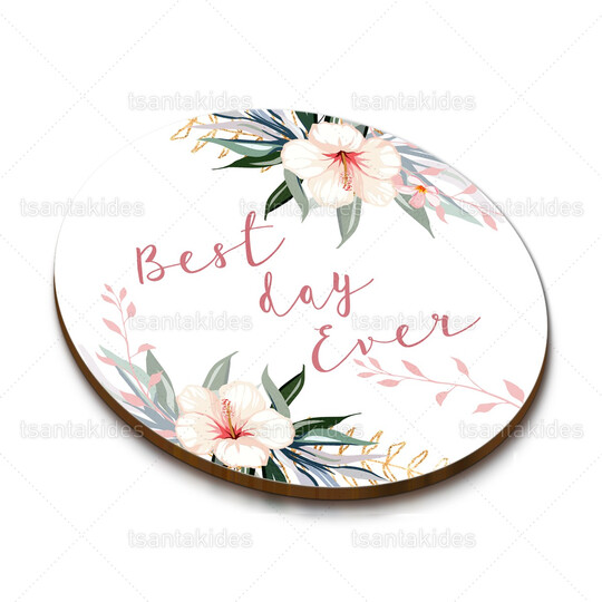 Ξύλινο σουβέρ γάμου εκτυπωμένο με θέμα Tropical Flowers