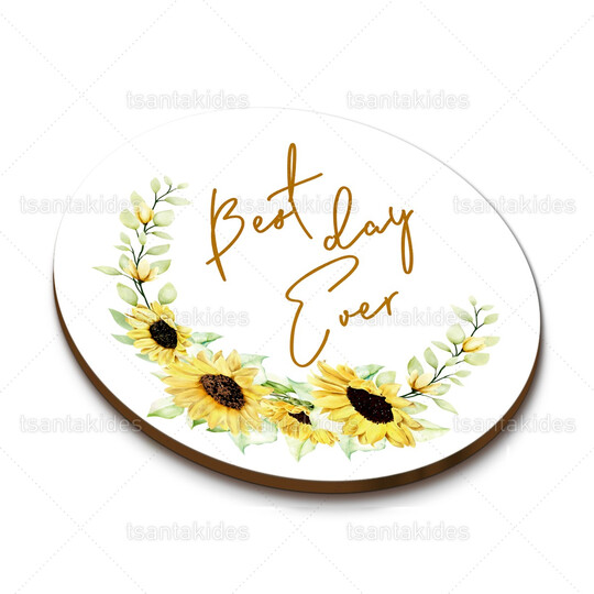 Ξύλινο σουβέρ γάμου εκτυπωμένο με θέμα Sunflower